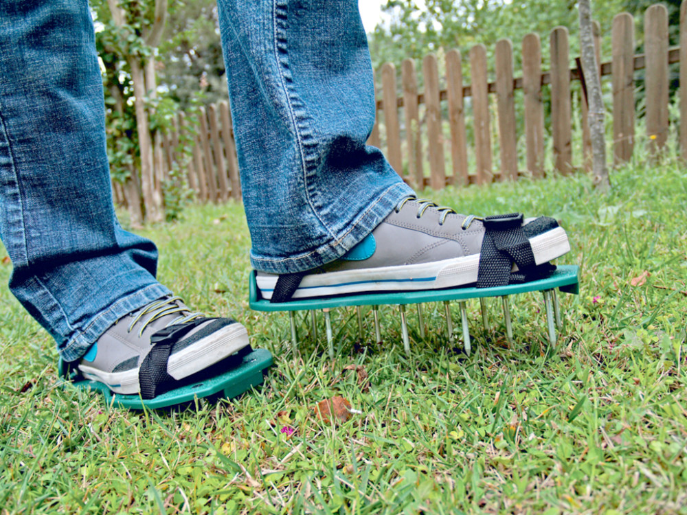 Praktikus gyepszellőztető tüskés talp, melyet csak fel kell csatolni saját cipőjére és sétálni. Használatával sokat tehet azért, hogy egészséges és zöld legyen a gyep.