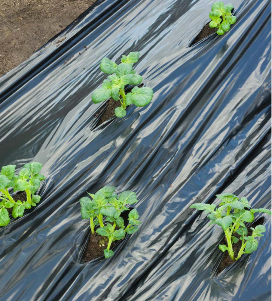 Takarófólia burgonyához, fekete 0,95mx10m, előre lyukasztott.