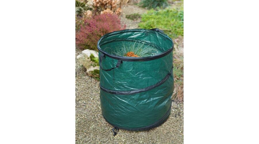 Többfunkciós hulladékzsák, lehullott levelekhez, kerti hulladékokhoz. Zöld színű, két fogyantyúval a könnyebb hordozás érdekében. Helytakarékos, használaton kívül összecsukva tárolható.