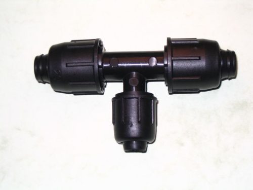Szűkítő T idom 20x16x20, LP csövekhez és csepegtető csövekhez.